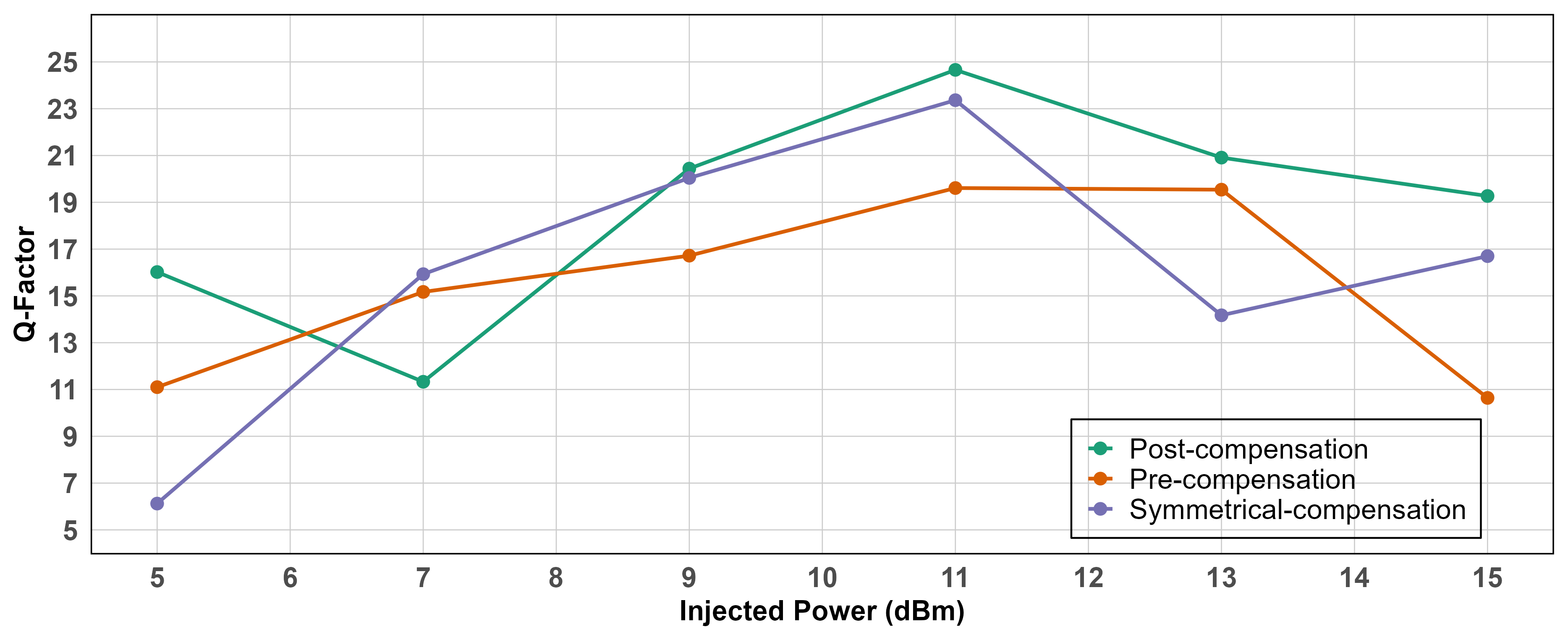 comparison of pre-, post-, and symmetrical-dispersion compensation techniques